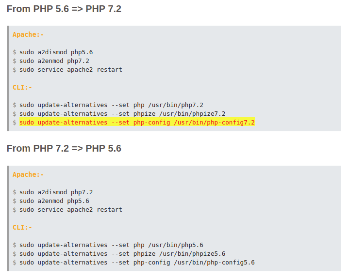 4. switch versi PHP =>https://tecadmin.net/install-php5-on-ubuntu/